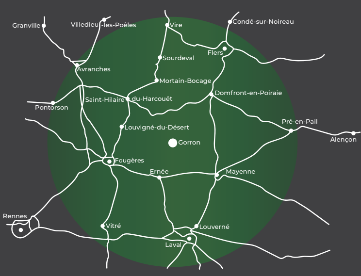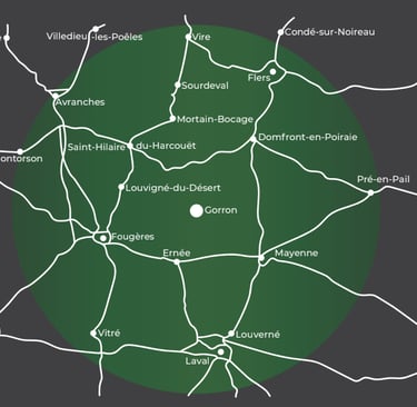 Concernant les interventions sur site, nous nous déplaçons dans un rayon d'une heure aux alentours de nos locaux, ce qui couvre une partie de la Mayenne, de l'Ille et Vilaine, de la Manche, de l'Orne et du Calvados. Pour les prestations de préfabrications de vos équipements électriques, nous étudions vos demandes au niveau national.